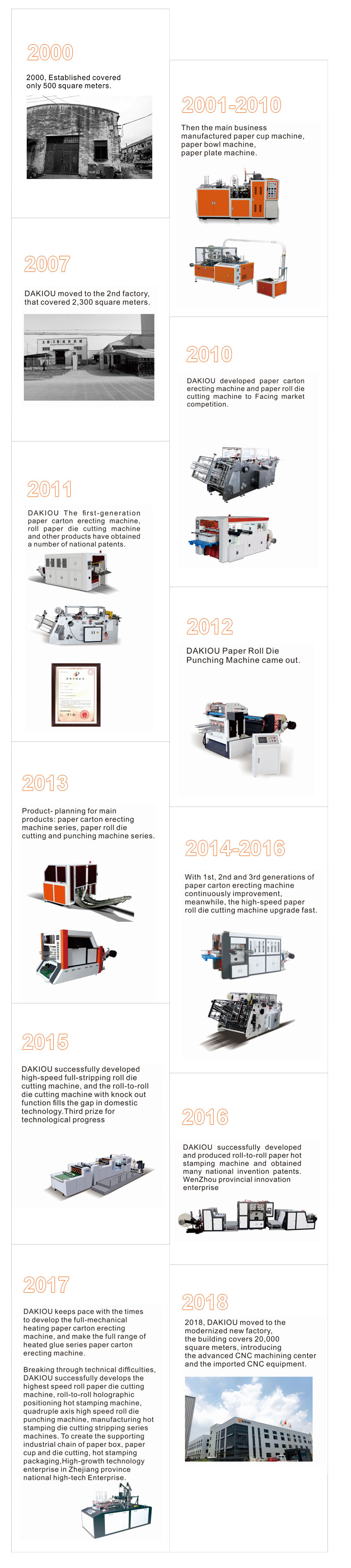 中國(guó)·瑞安市大橋包裝機(jī)械有限公司成立于2002年,是一家集科研、制造、銷(xiāo)售及服務(wù)為一體的高新技術(shù)企業(yè)。公司專(zhuān)業(yè)生產(chǎn)全清廢卷筒平壓平模切機(jī)、高速卷筒平壓平模切機(jī)、全自動(dòng)立體紙盒成型機(jī)(上膠和熱粘) 、紙杯(碗)機(jī)、紙盤(pán)機(jī)等紙容器自動(dòng)化設(shè)備。自成立以來(lái),公司不斷深化產(chǎn)品生產(chǎn)線,對(duì)產(chǎn)品精益求精,取得數(shù)十項(xiàng)發(fā)明和實(shí)用新型專(zhuān)利,全面通過(guò)歐盟CE質(zhì)量安全認(rèn)證。榮獲得省市科技(創(chuàng)新)型企業(yè),國(guó)家高新技術(shù)企業(yè)。