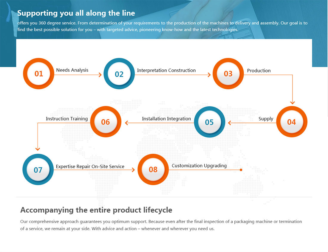 我們?nèi)娴姆椒ūWC您獲得更好的售后支持 因為即使在最終檢查包裝機或終止服務之后,我們?nèi)匀辉谀磉叀?通過建議和行動 - 無論何時何地,只要您需要我們。